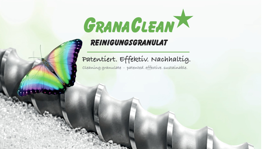 - GranaCleanⓇ Reinigungsgranulate können selbst mittels Spritzguss zu Teilen gespritzt werden: Dies erlaubt einen fliegenden Farbwechsel ohne größere Unterbrechungen.